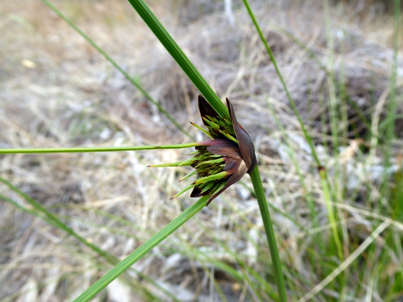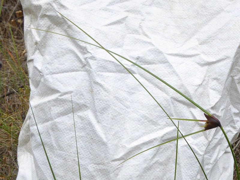 Mesomelaena is from the Greek words mesos, meaning middle, and melaino, meaning to turn black. It refers to the involucral bracts described as dark or black with pale hyaline margins. Tetragona is from the Greek word tetragonos, meaning with four equal angles, square.