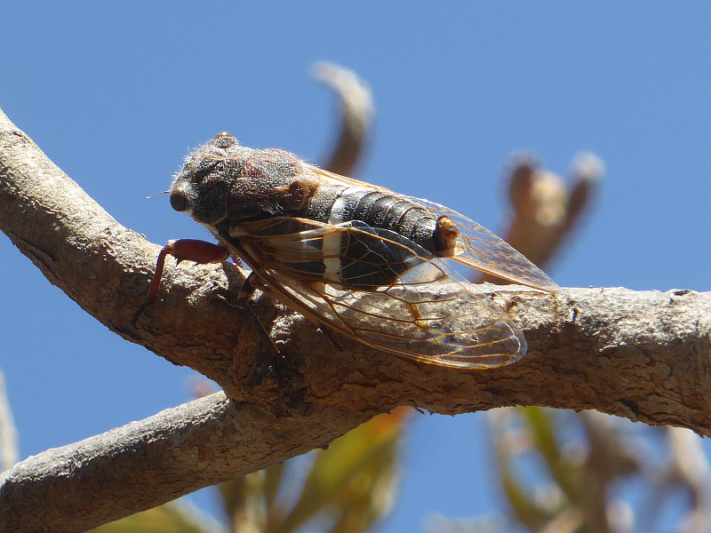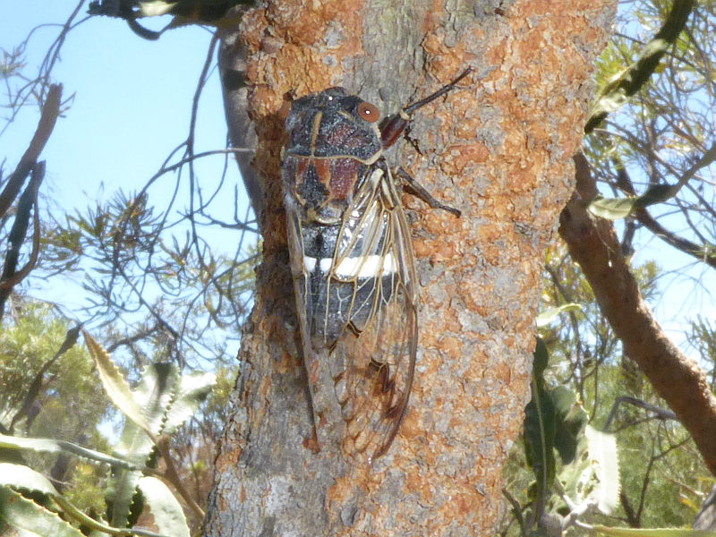 Occurs in open heathland and woodland with heath undergrowth. Banksia trees are often favoured. The song is a continuous harsh call which is normally made only in full sunshine. The adults emerge from October and live to late March.