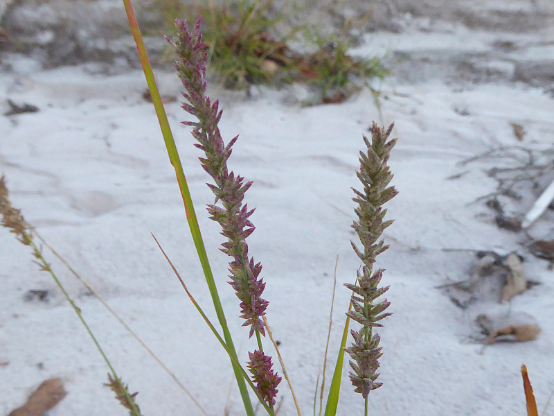 Eragrostis is from the Greek words eros, meaning love, and agrostis, meaning a grass. Elongata is from the Latin words elongatus, meaning lengthened. In this species it refers to the long flower heads.