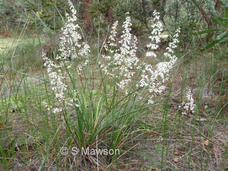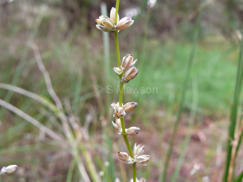 Lomandra is from the Greek words loma, meaning the border of a robe, and andros, meaning man. It refers to the border of the anthers in some species. Nigricans is from the Latin word niger, meaning black. Botanically it refers to specimens which become black or blackish when dried.